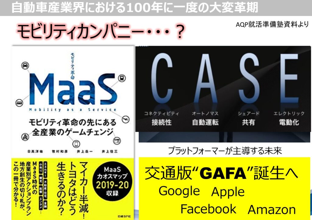 平成時代の家電業界の凋落がわかりやすいけれど、 最近では自動車業界の例がわかりやすいと思います。 自動運転のレベル5(システムが全ての運転タスクおよび作動継続が困難な場合への応答を無制限に実行する状態)=完全無人運転になった世界における、自動車関連産業への大ダメージは既にその業界ではかなり前からHOTすぎる話題ですよね。電動化だけでも 内燃エンジン、トランスミッション、マフラー、燃料系の部品メーカーは消えるかもしれないと言われているうえに、完全自動運転になった世界では、個人の生活が一変する。車を所有しなくなるので免許証も教習所もいらない、AIが運転するので無謀運転も・事故も激減し、保険もかなり変貌する、交通系の警察業務もいらない、ドライバーという仕事もなくなるなどというというのはうそのような本当の話になるのだろうと思います。 実際、昔あった職業が、なくなってしまったというのは私たちはたくさん知っていますよね。